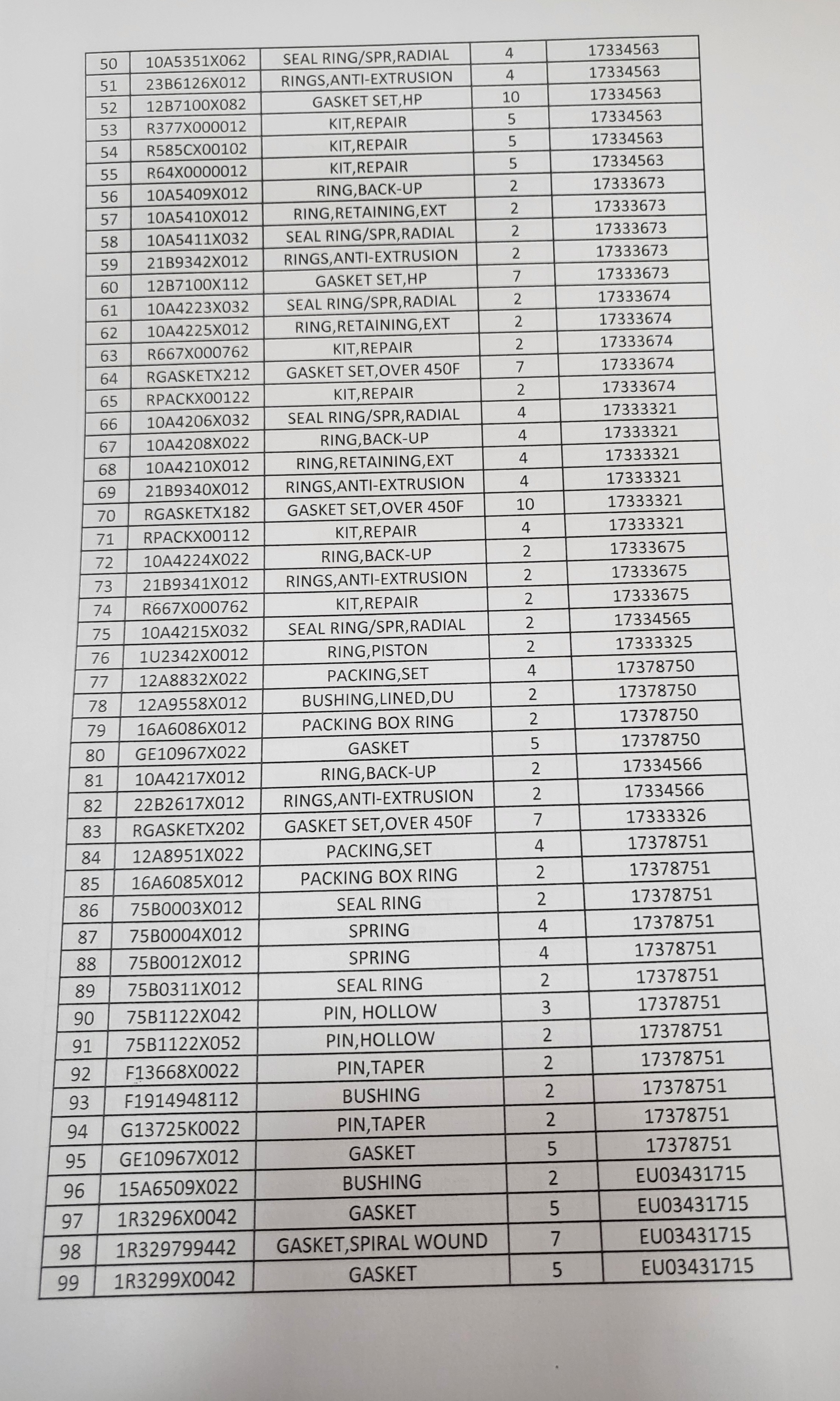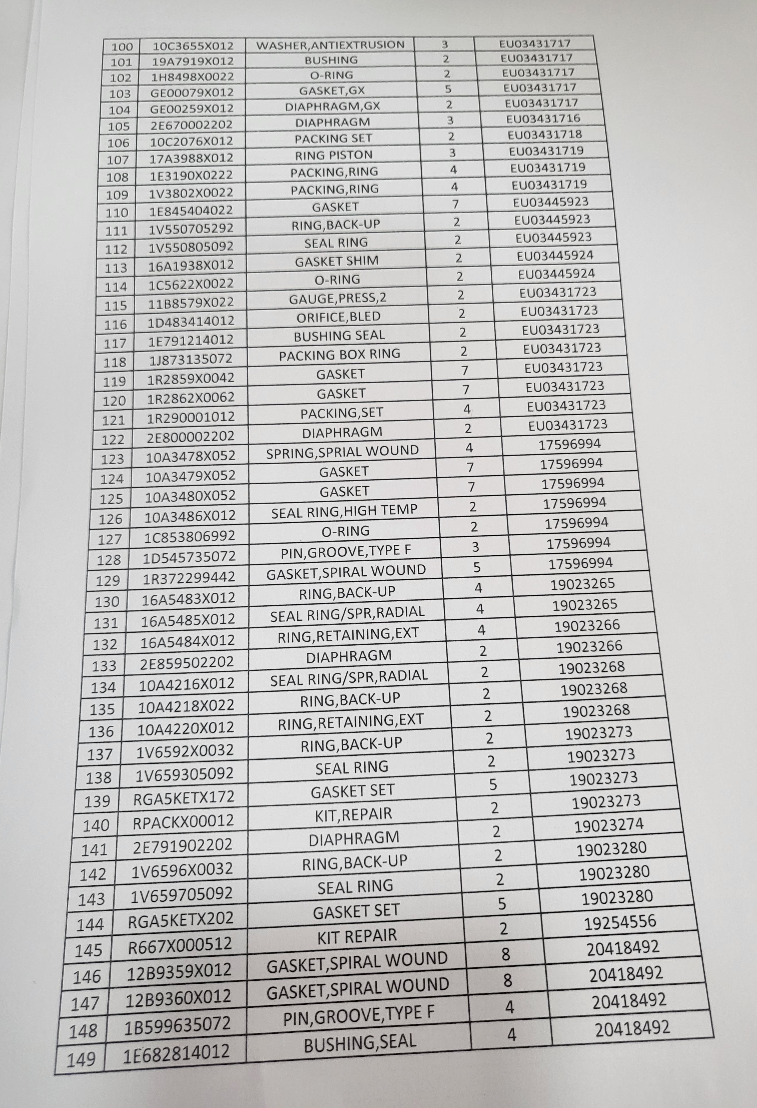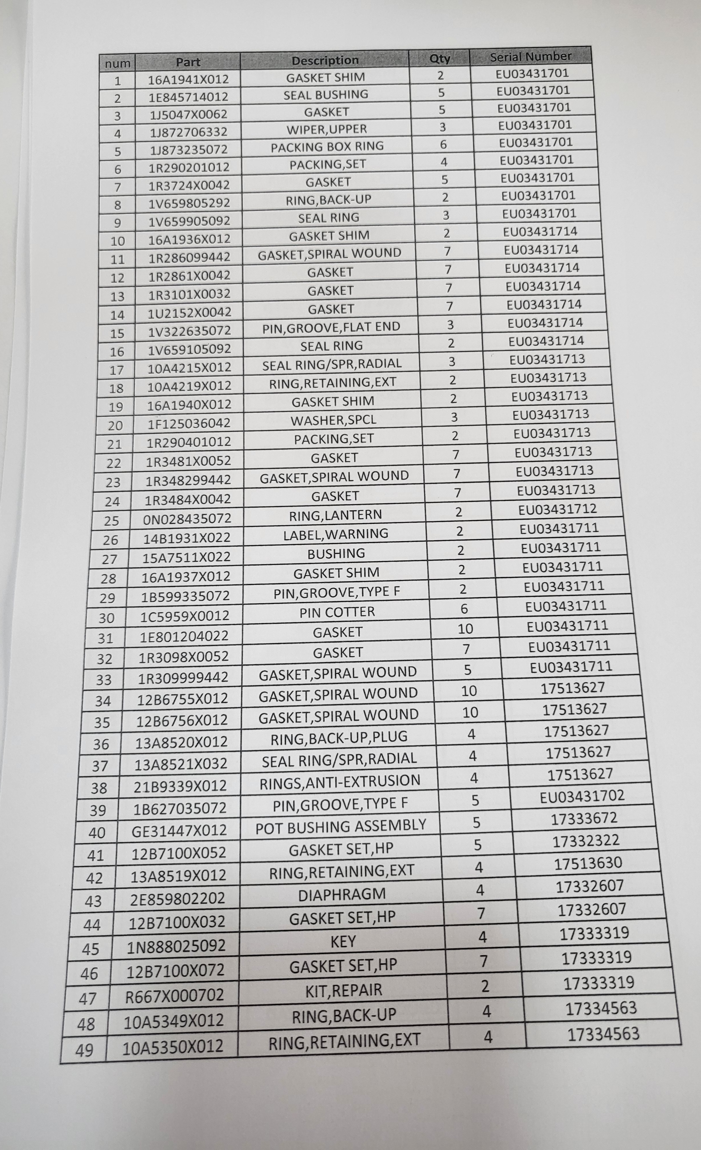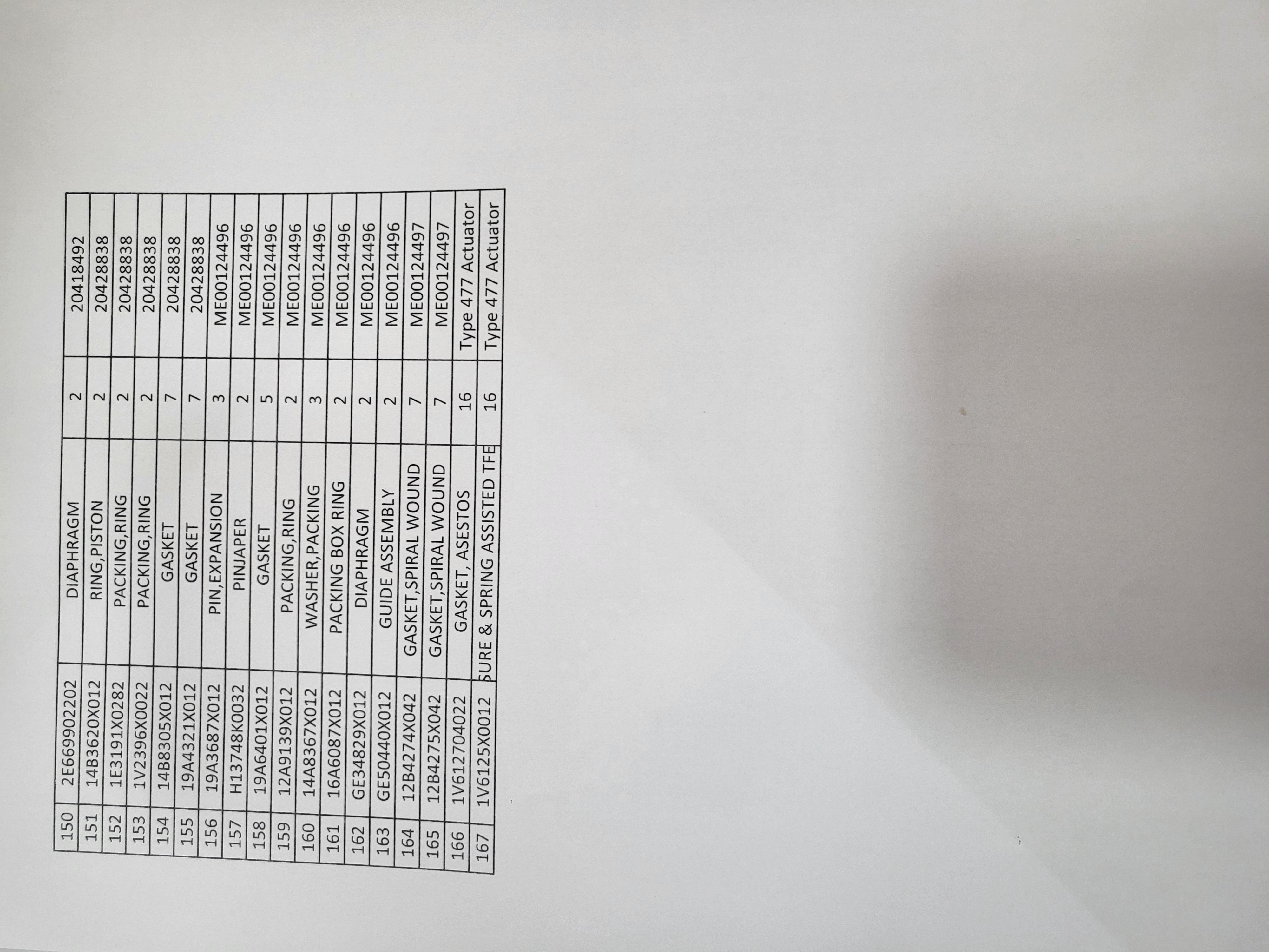 supply of spare parts for control valve